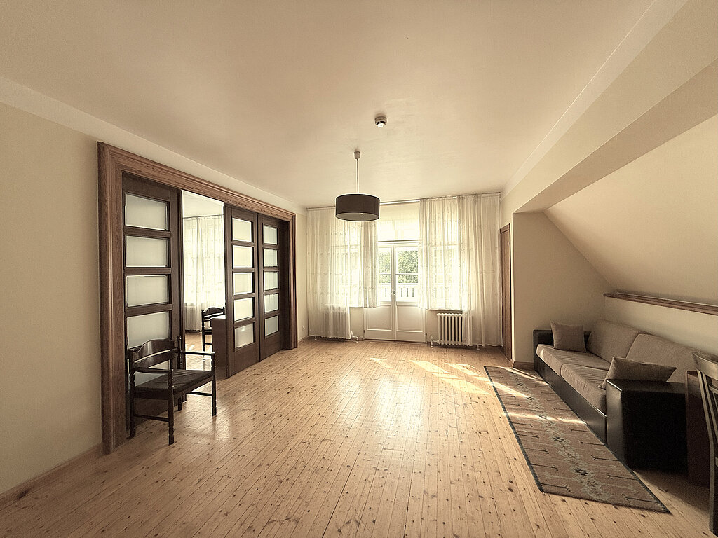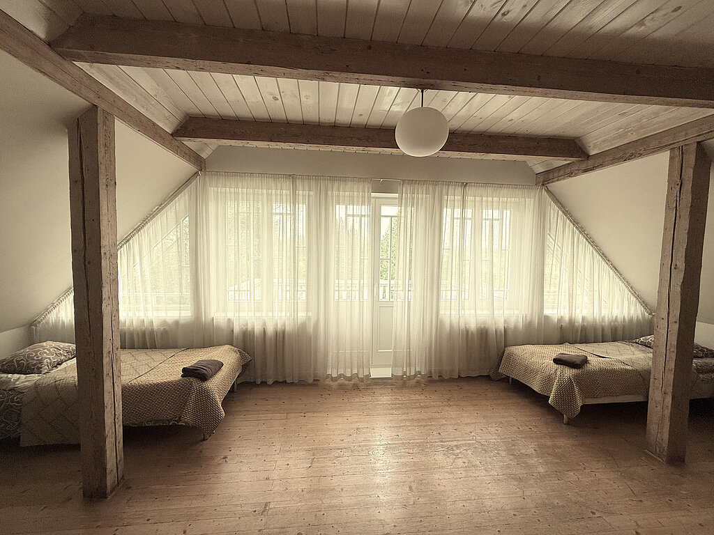 Currently, we offer accommodation for individual travelers and groups in the charming Kungu māja, where guests can enjoy historical elegance — the interior features beautiful wooden accents in a 1930s style. Kungu māja includes:
